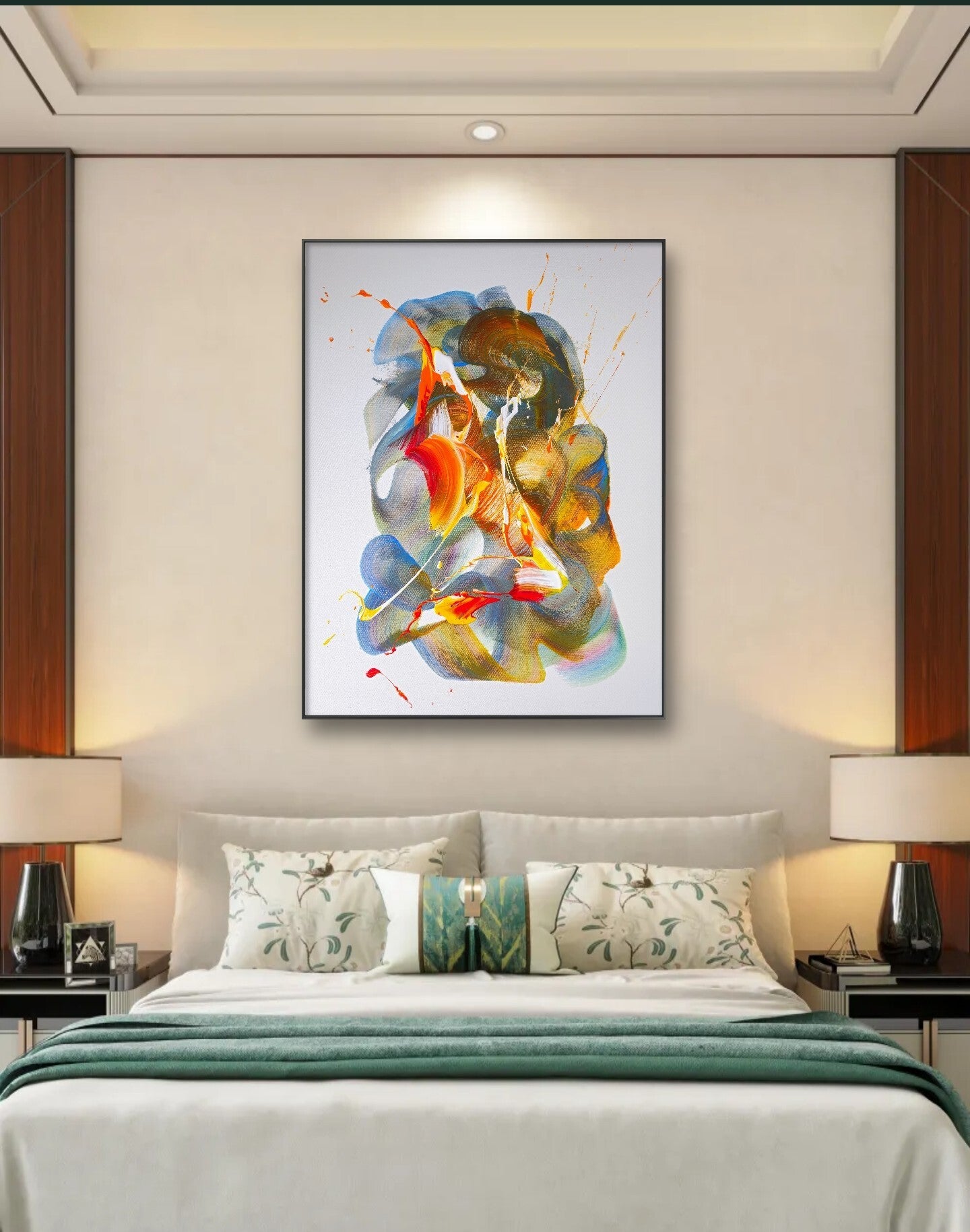 With its vivid colours and energetic brushstrokes, this beautiful painting brings a modern, contemporary feel wherever it hangs. The abstract style allows for imaginative interpretation and gives spaces a splash of artistic flair. Ideal for living rooms, bedrooms, offices, or galleries. Make your walls come alive with this vibrant hand-painted abstract beauty.